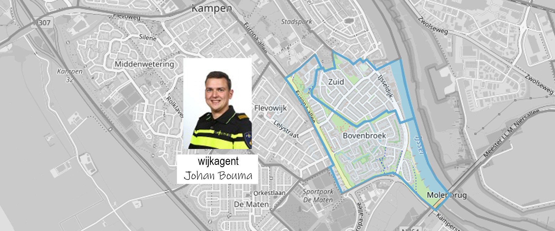 Ik ben Johan Bouma en nu bijna een half jaar uw wijkagent. Ik werk nu 15 jaar bij de politie. In 2018 ben ik wijkagent geworden in Zwartsluis en nu mag ik in Kampen werken.